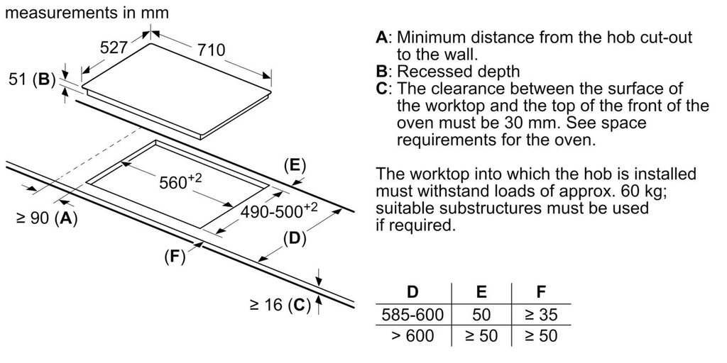 Thông số được thiết kế chuẩn để tương thích với không gian bếp âm và mang lại hiệu suất cao: