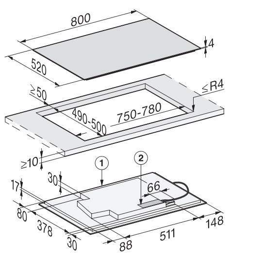 - Kích thước lắp âm: 780 × 500 mm (hoặc 804 × 524 mm khi lắp phẳng)