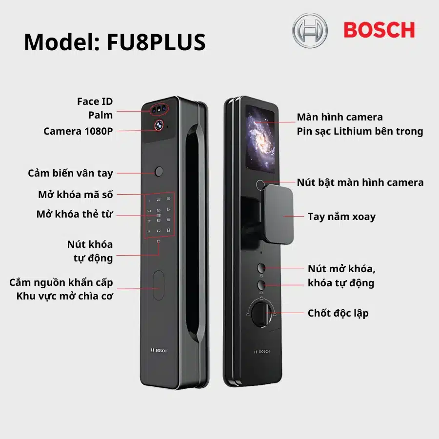 Khóa cửa thông minh Bosch FU8PLUS là dòng sản phẩm cao cấp mang phong cách châu Âu hiện đại, tích hợp nhiều công nghệ tiên tiến nhằm nâng cao an toàn, tiện nghi và thẩm mỹ cho không gian sống. Với thiết kế sang trọng, vật liệu bền bỉ và hệ thống bảo mật đa tầng, FU8PLUS là lựa chọn lý tưởng cho những gia đình và văn phòng yêu cầu sự an toàn tuyệt đối kết hợp với trải nghiệm sử dụng tiện lợi.