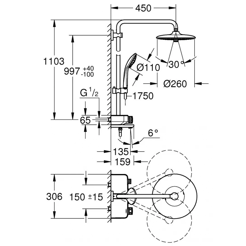 - Công nghệ Grohe DreamSpray®: Phân phối nước đồng đều trên tất cả các lỗ phun.