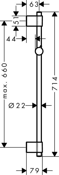 Thanh treo sen Hansgrohe Unica Varia 72 cm gồm thanh trượt và slider, thiết kế dạng ống tròn đường kính 22 mm, mạ chrome sáng bóng. Chiều dài thanh 714 mm (~72 cm) phù hợp đa dạng không gian phòng tắm.