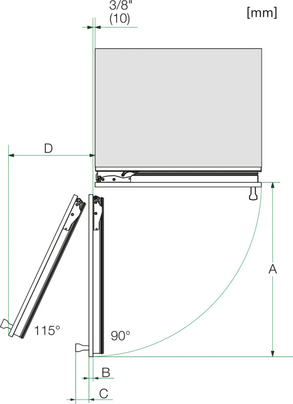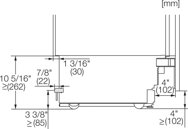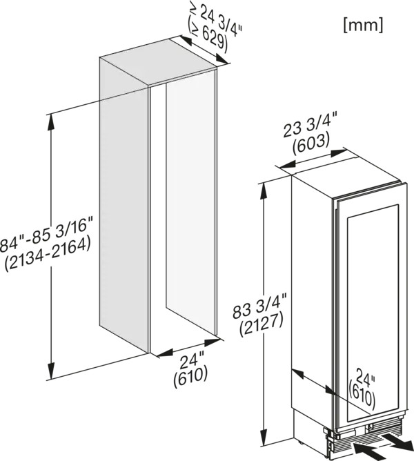 - Chiều rộng ngách tính bằng inch (mm), tối thiểu: 24 1/8 (610)