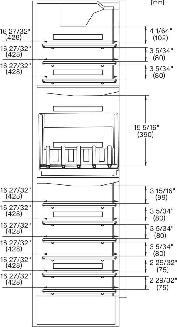 - Chiều rộng ngách tính bằng inch (mm), tối đa: 24 1/8 (610)
