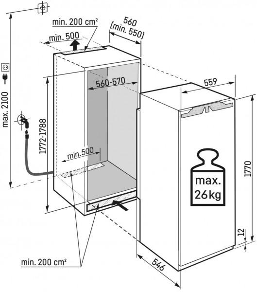 - Kích thước khoét lắp (cao x rộng x sâu): 177,2 – 178,8 / 56 – 57 / 55,0 cm