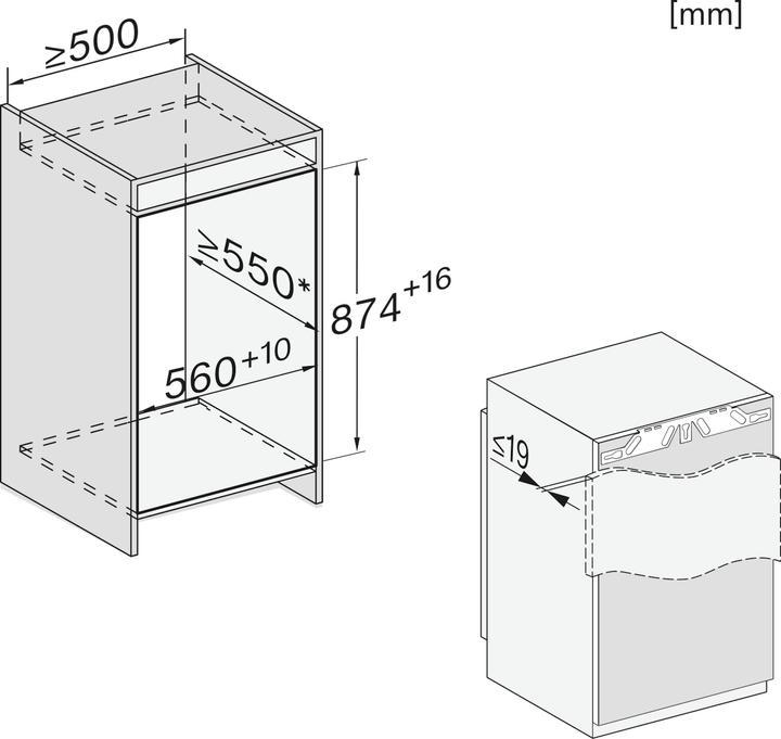 - Kích thước hộc tủ yêu cầu: 874–890 mm chiều cao, rộng 560–570 mm, sâu từ 550 mm