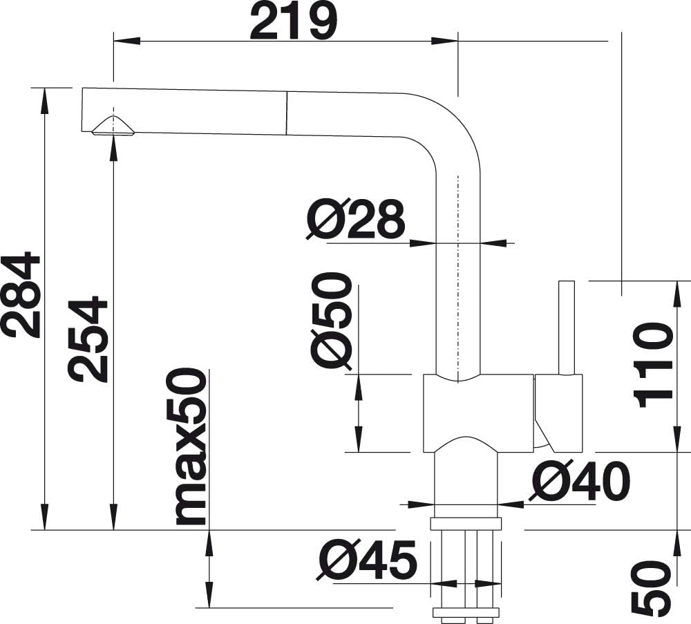 - Chiều cao đến đầu vòi: 223 mm